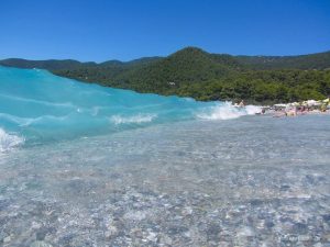 Η παραλία που λάτρεψα από την πρώτη στιγμή ονομάζεται Μηλιά και είναι στο ήμισυ οργανωμένη (όπως οι περισσότερες) για να ικανοποιήσει όλες τις επιθυμίες των επισκεπτών του νησιού. Η Μηλιά είναι η μεγαλύτερη παραλία του νησιού με χοντρό βότσαλο με καταγάλανα νερά και ομαλό βύθισμα.